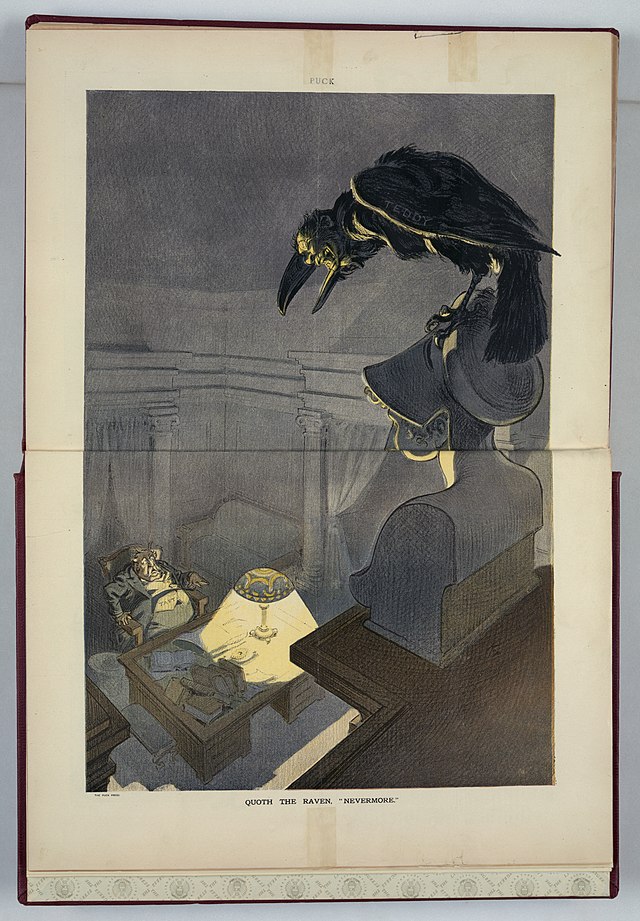 Zatem nie można czynić zarzutu wielkiemu pisarzowi Edgarowi Allonowi Poemu, że kruk w jego poemacie „Kruk” powtarza wciąż złowieszczo: „nigdy już”.