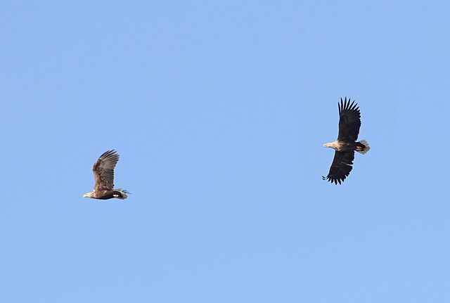 Różnica jest taka, że bielik jest znacznie większy. Ma bardzo długie, „deskowate” skrzydła i klinowaty ogon. Gdy krąży, wygląda masywnie i majestatycznie. Często robi to nad jeziorami i dolinami rzecznymi, ale również nad otwartym krajobrazem.