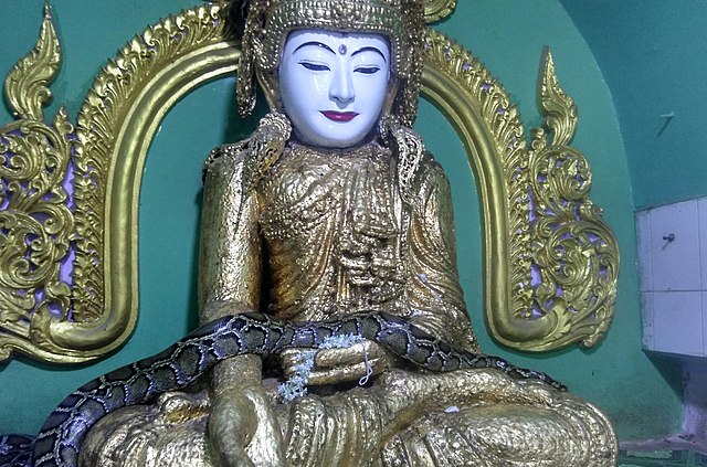 W buddyzmie nagowie – istoty o wężowej naturze – strzegą nauki Buddy. Medytacja to również zejście w głąb, nie wzniesienie się ku górze. Znów ten sam kierunek symboliczny.