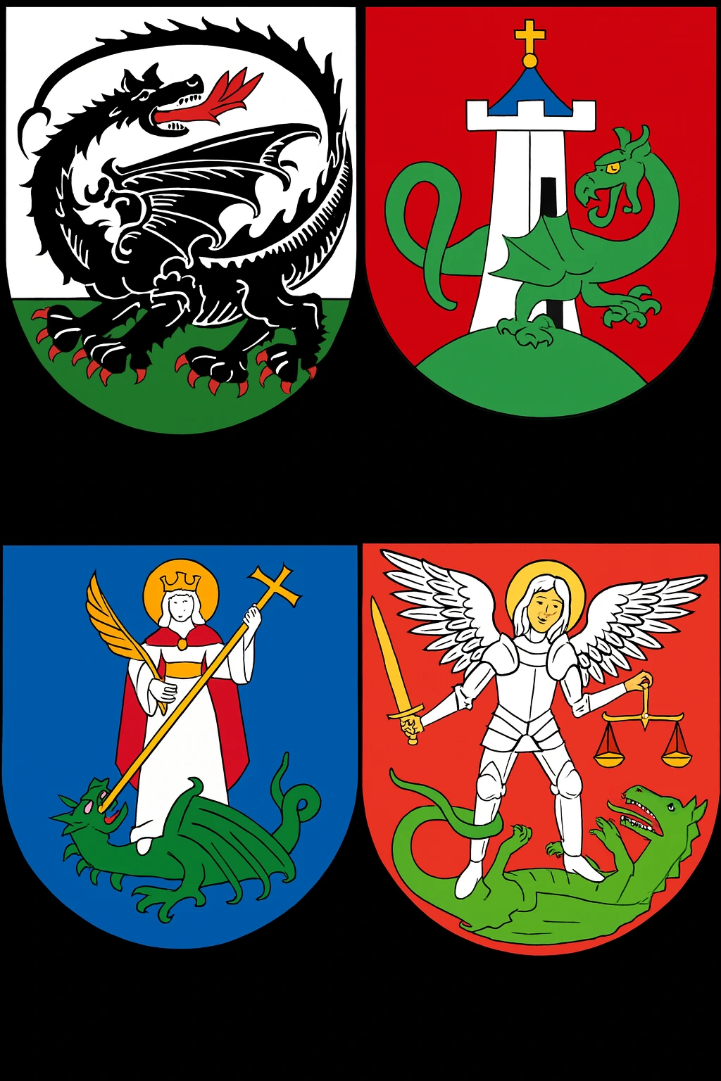 Te cztery herby pokazują wyraźnie, że w Polsce smok nie ma jednego znaczenia. Może być: