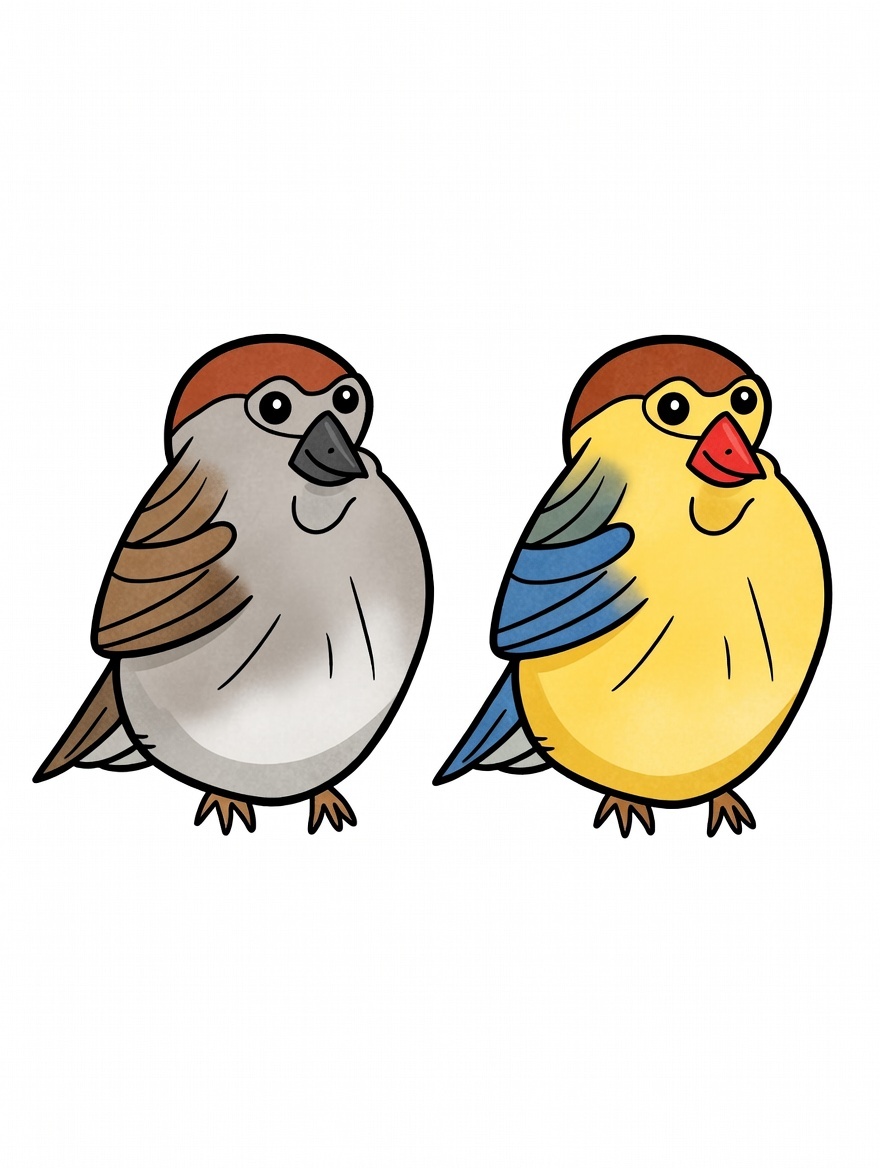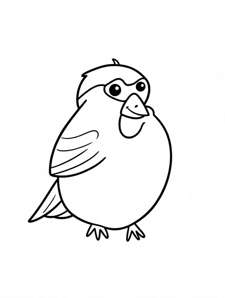 Pulchny wróbelek z wielkimi oczami i szerokim uśmiechem czeka, aż go ożywisz kolorami!
