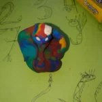 1. Zacznij od dużej kulki z **pomarańczowej** plasteliny – to będzie tułów i głowa liska razem. Lekko spłaszcz ją z dołu, żeby lepiej siedział. Z przodu delikatnie wyciągnij pyszczek – nie za długi, taki trochę zaokrąglony. Z tyłu zostaw grubszy kawałek na ogon – będzie zawinięty do przodu.